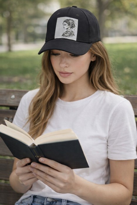 Minimalistická černá kšiltovka s autorským motivem inspirovaným japonskou estetikou. Jemná ilustrace Geishy dodává modelu nadčasový charakter a snadno se kombinuje s městským i volnočasovým outfitem.