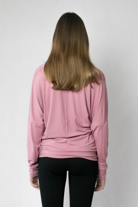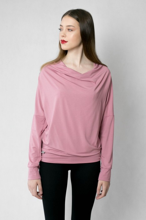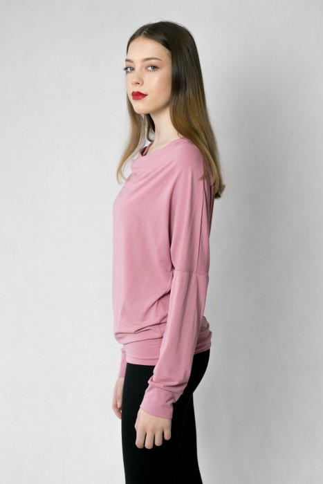 Starorůžové triko s netopýřími rukávy, přední díl s "vodou", zadní díl vypasovaný. Viskóza/elastan.