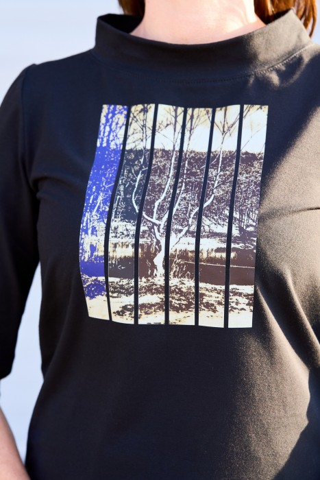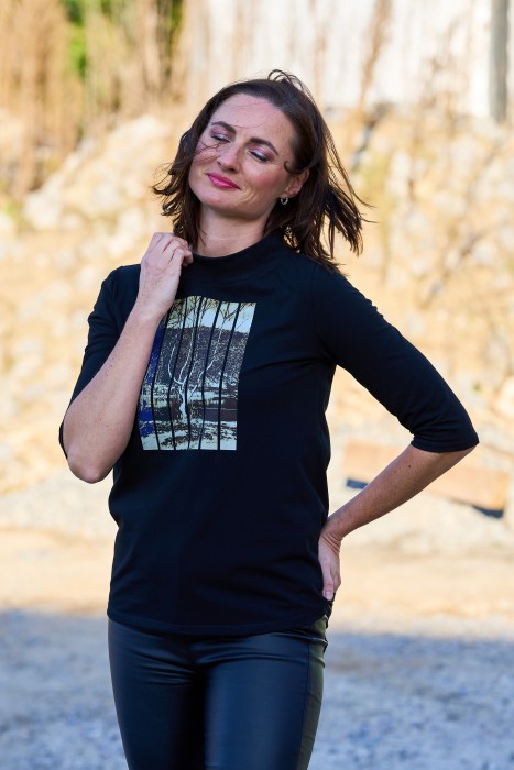 Objevte pohodlí a styl s tímto černým trikem, které kombinuje moderní design s nádechem historie. Vyrobeno z kvalitní bavlny s elastanem, triko lehce pruží a skvěle drží tvar. Elegantní stojáček dodává modelu sofistikovaný vzhled, zatímco volnější střih zajišťuje maximální komfort. Inspiraci pro tento kousek jsme čerpali z více než 100 let staré historické fotografie lesoparku v pražských Hodkovičkách, což mu dodává jedinečný šarm. Ideální pro každodenní nošení, nebo jako stylový doplněk do vašeho šatníku.