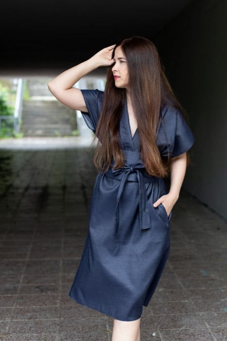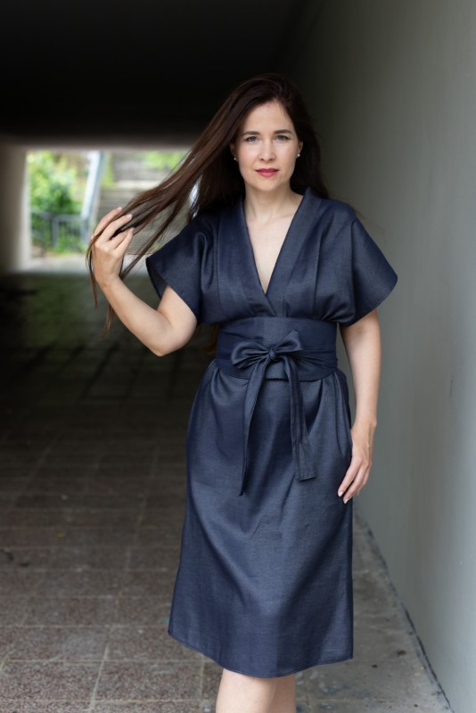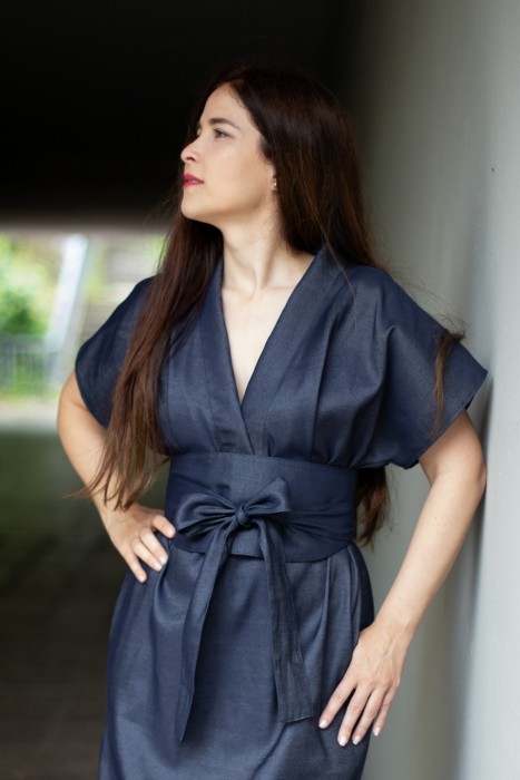 obvod látky přes prsa a boky je 116 cm