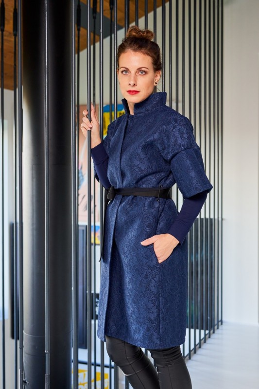 Tmavě modré krajkové kimono. Vnější vrstva je krajka, vnitřní teploučký fleece.