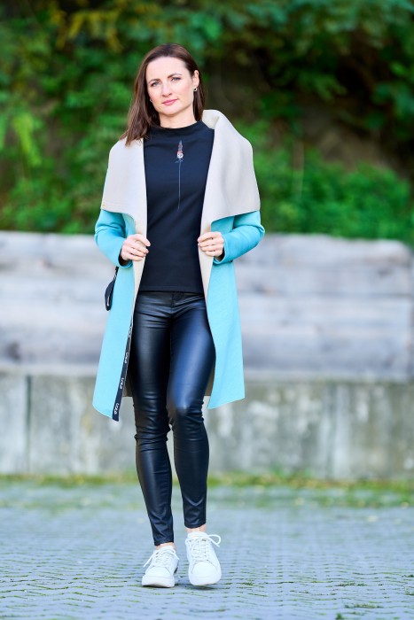 Objevte dokonalou kombinaci stylu a funkčnosti s tímto kabátem z oděvního neoprénu v trendy mint barvě. Díky mírné pružnosti a skvělým izolačním vlastnostem vás zahřeje až do +12 °C a účinně ochrání před větrem. Kabát skvěle vypadá nejen zapnutý, ale i rozepnutý, kdy vynikne jeho elegantní krémová rubová strana. Ideální volba pro každou příležitost!