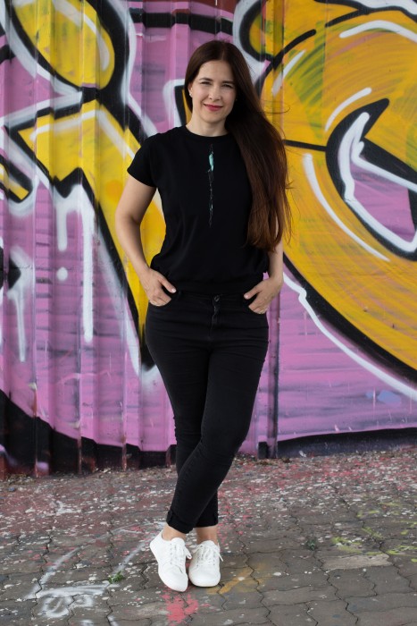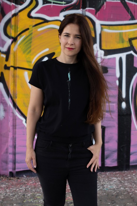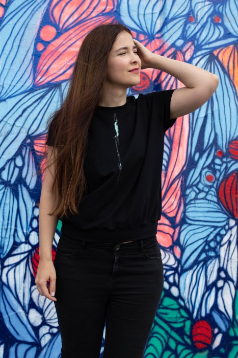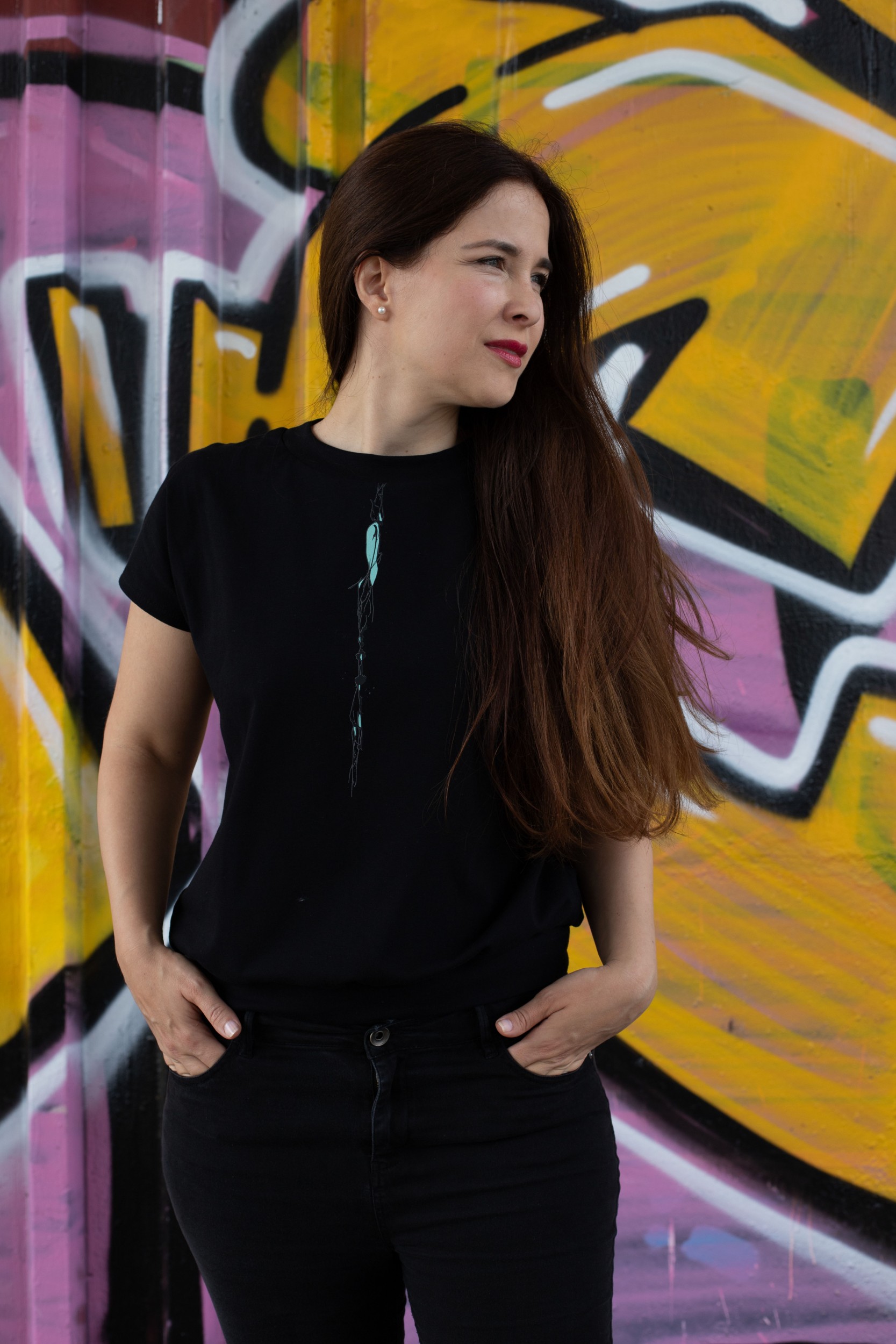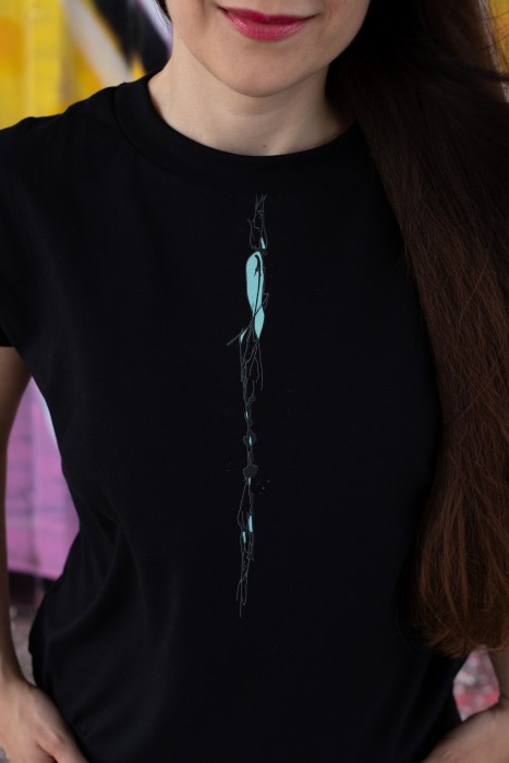Pohodlné tričko z bavlny s elastanem, kulatý výstřih, dolní lem. Zdobí ho originální tisk inspirovaný abstraktním tetováním – výrazný a stylový detail pro každodenní outfit.
