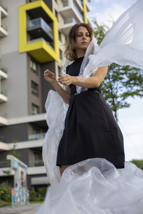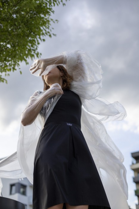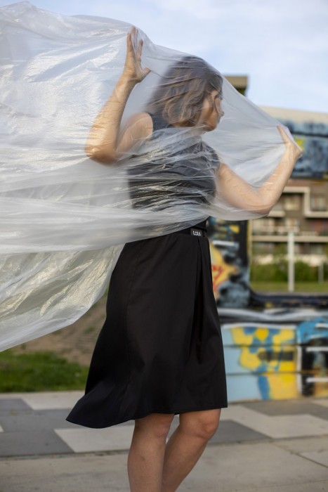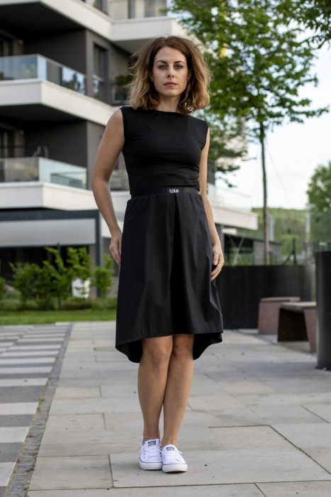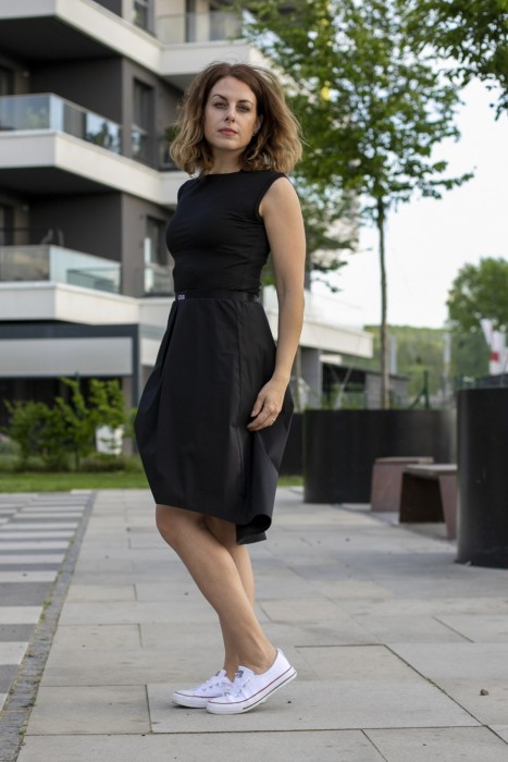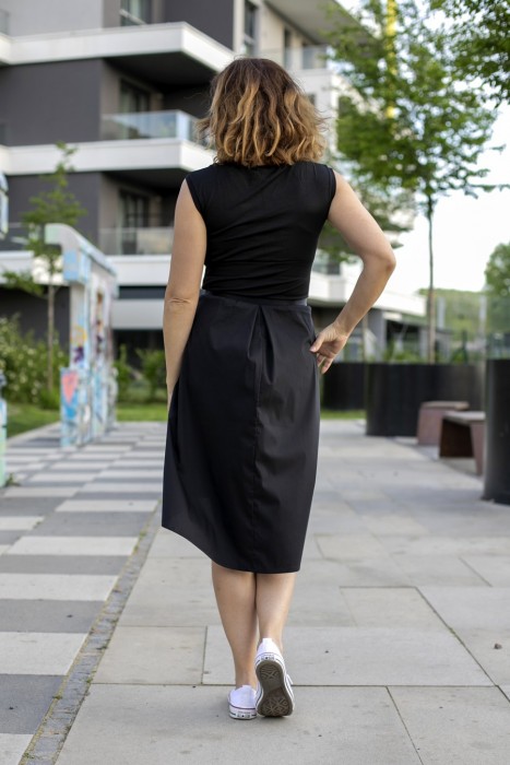 Letní černá sukně. Pásek je saténová guma. Materiál lehce pružný bavlněný popelín.