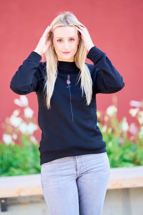 konf. velikost 42, obvod přes prsa 96 cm, délka od ramene dolů na předním díle 66 cm, zadní má 75 cm