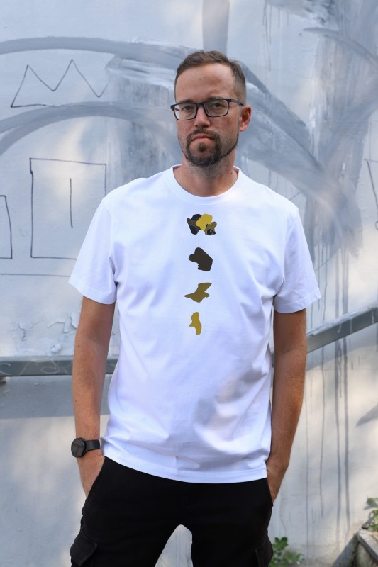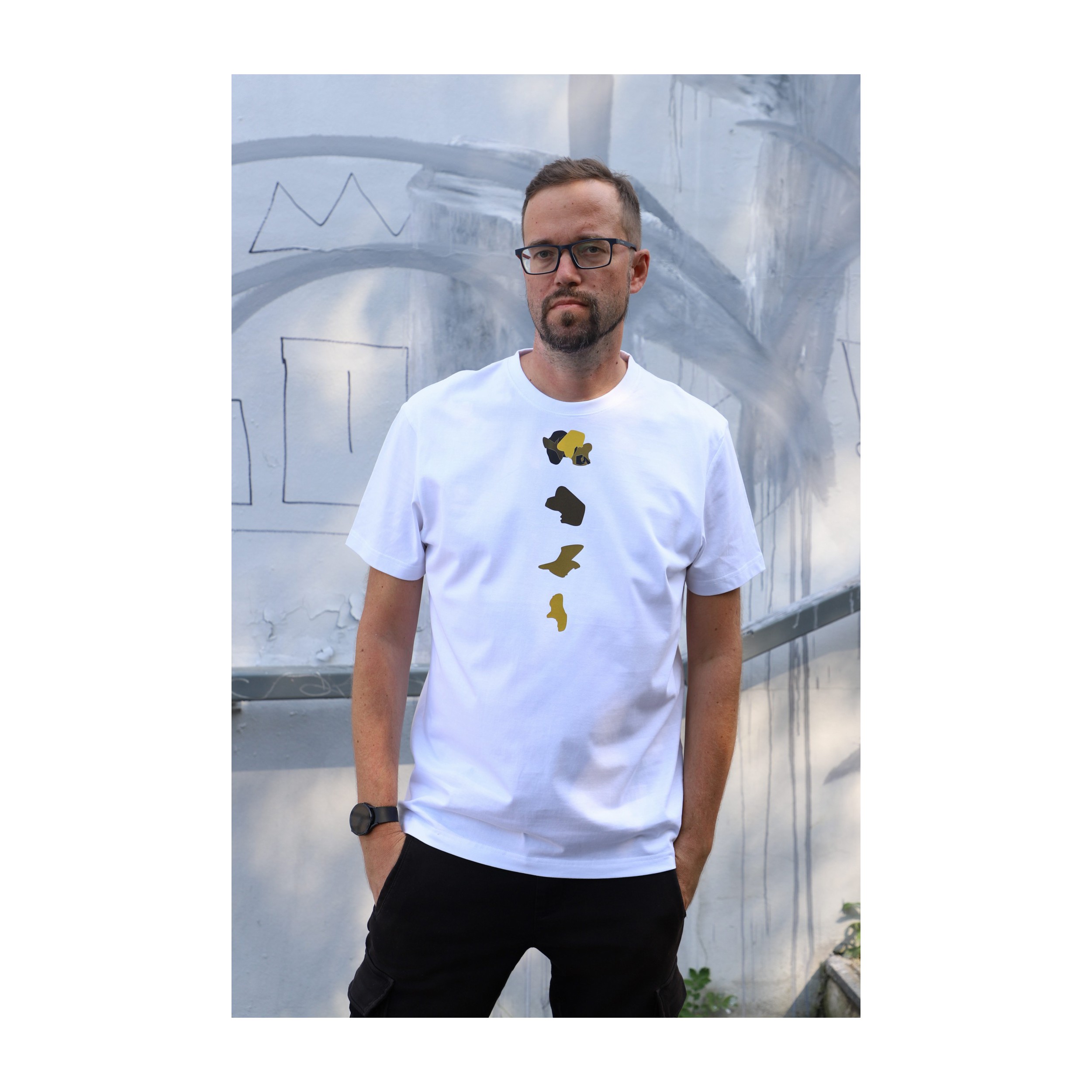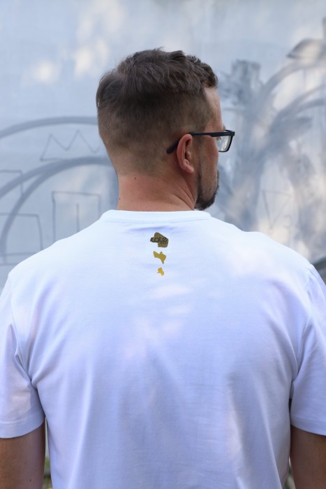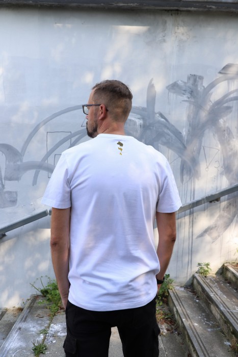 Bílé pánské triko z bavlny vyšší gramáže a autorským potiskem.