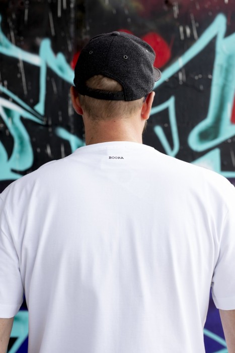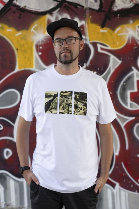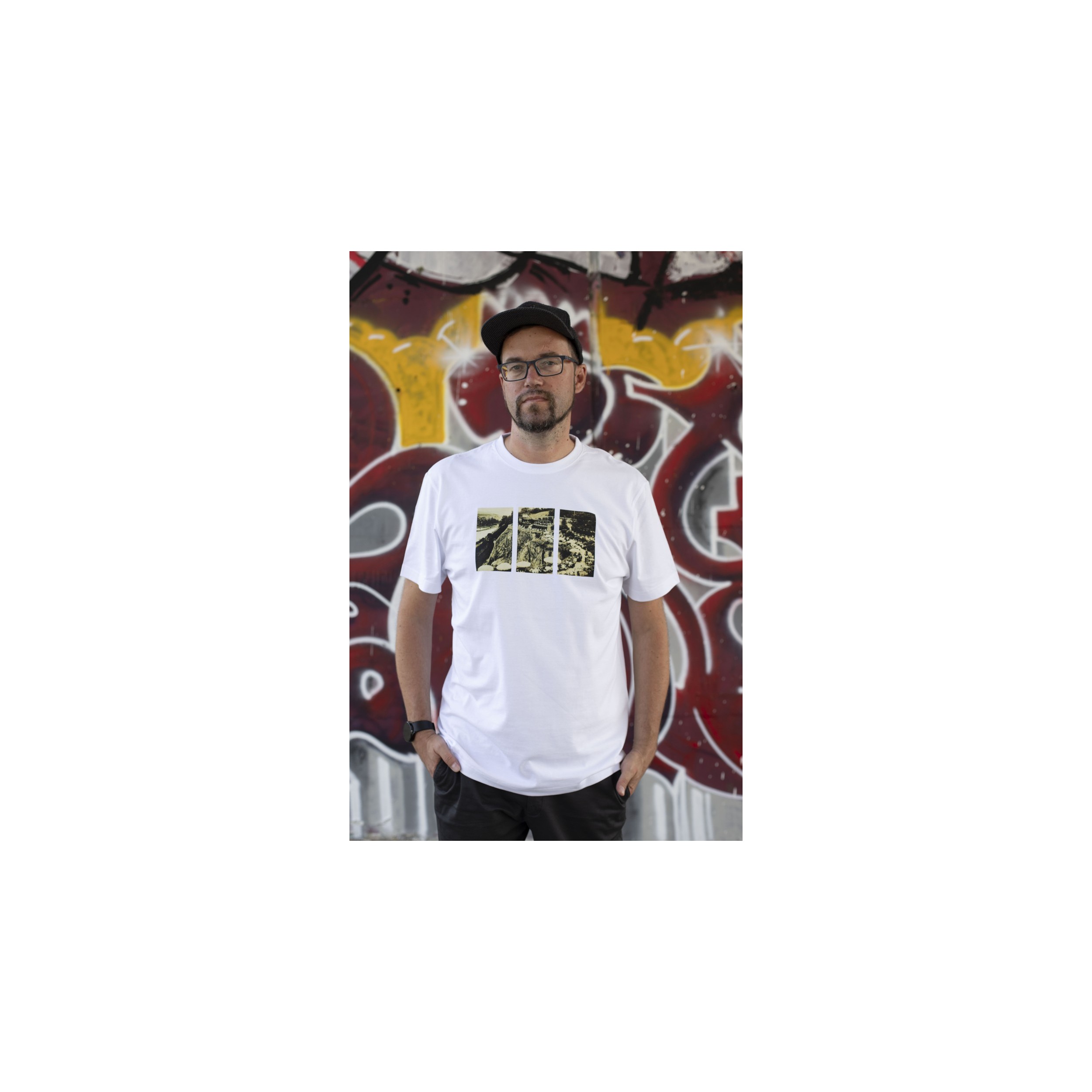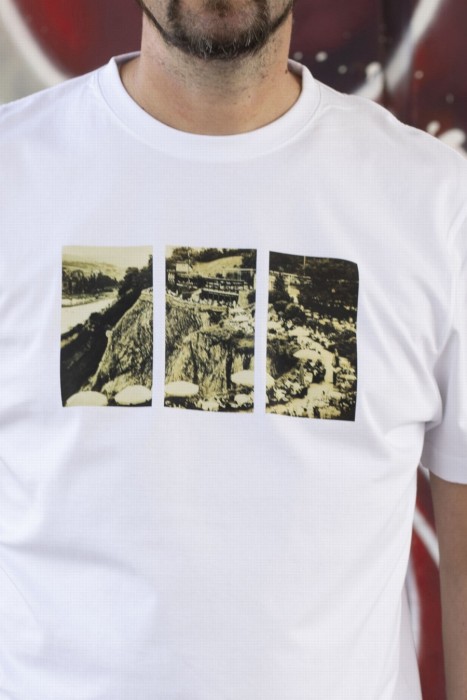Bílé bavlněné pánské triko  vyšší gramáže s digitálním potiskem dobové pohlednice Barrandovských teras.