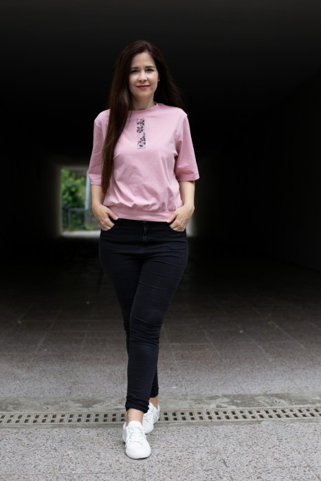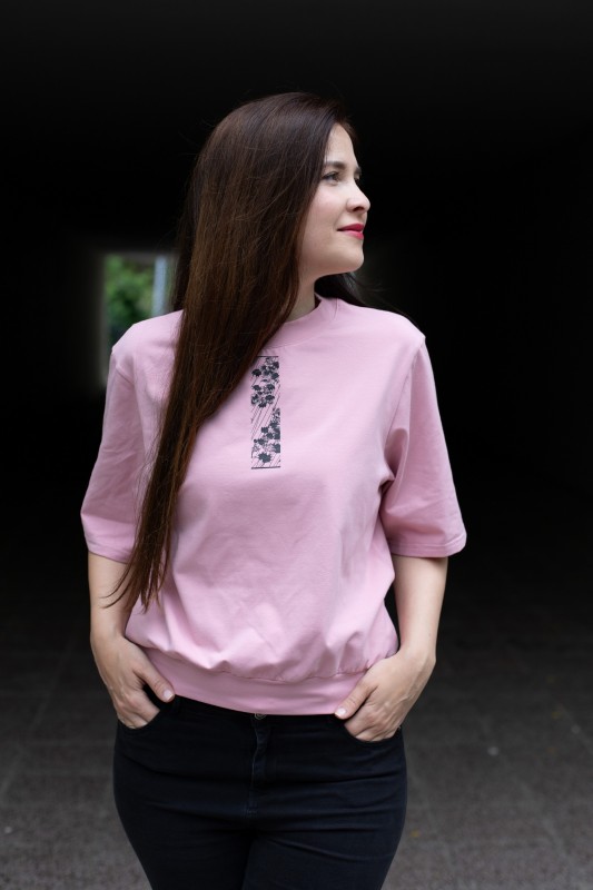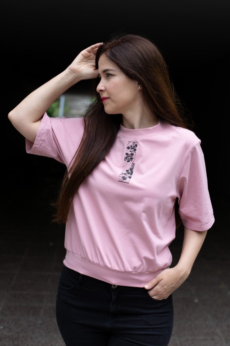Růžové OVERSIZE triko s jemným detailem a širšími rukávy