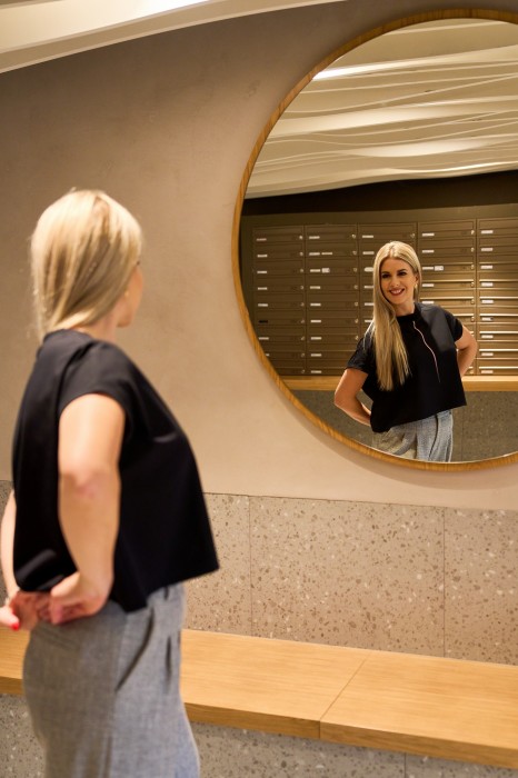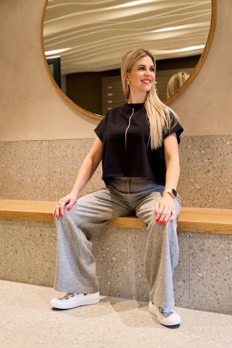 Černé oversize tílko z jemné bavlny v pohodlném střihu. Na přední straně je tisk vystínované růžové linky. Skvělý kousek pro každodenní nošení s trochou osobitého designu.