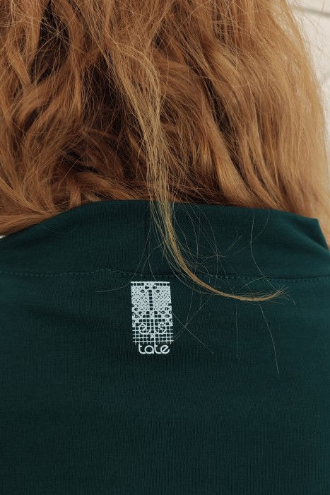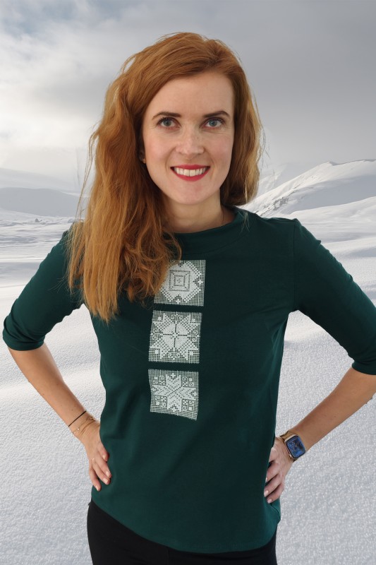 Originální potisk inspirovaný křížkovou výšivkou a severskými vzory dodává triku jedinečný charakter.